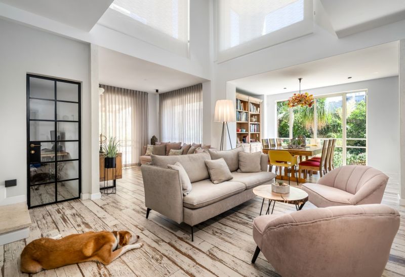 הבית אובזר בריהוט עכשווי בגוונים בהירים.