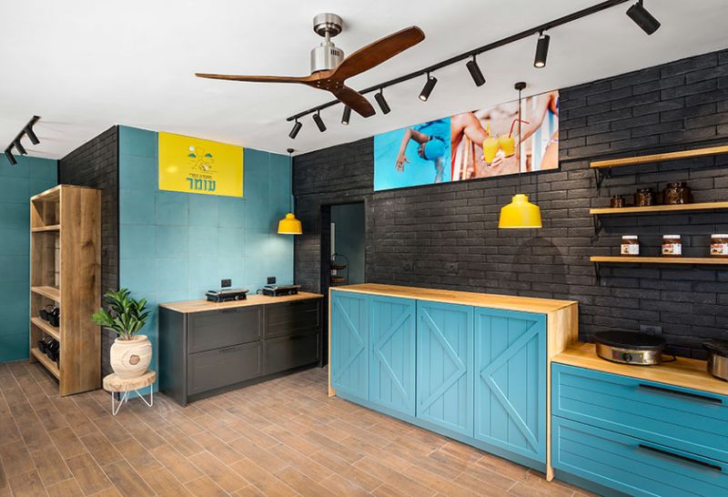 הקפיטריה שתכננה המעצבת מולי אהרון היא למעשה חלק ממועדון כפרי המהווה סוג של קאנטרי קלאב בישוב עומר. הרעיון שעמד בבסיס תכנון הקפיטריה היה לשמור על הקונספט הכפרי המבטא את ההוויה של המקום שבתחילת דרכו היה מושב ועם השנים התפתח אט, אט והפך לישוב יוקרתי בעל שם. הבריקים והחזיתות הכפריות של נגרות הפנים, השימוש בחיפוי חיצוני דמוי עץ, והאלומיניום יצרו שילוב חומרי שנועד לחזק את האווירה ולתמוך את ההוויה הכפרית במקום. הצבעים שנבחרו לקפיטריה הם הטורקיז והצהוב, גוונים שמסמנים את הקיץ - שמש ומים ארטיק לימון, בננה ושוקו.