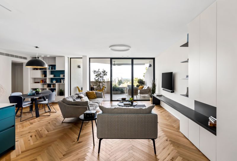 בדירת חמישה חדרים בגודל 140 מ"ר, בקומה החמישית של בניין שנמצא במרכז הארץ. גרים כאן זוג הורים עם שני ילדים. בשנתיים האחרונות ההורים עובדים מהבית ככה שהדירה משמשת גם כמשרד עבורם.