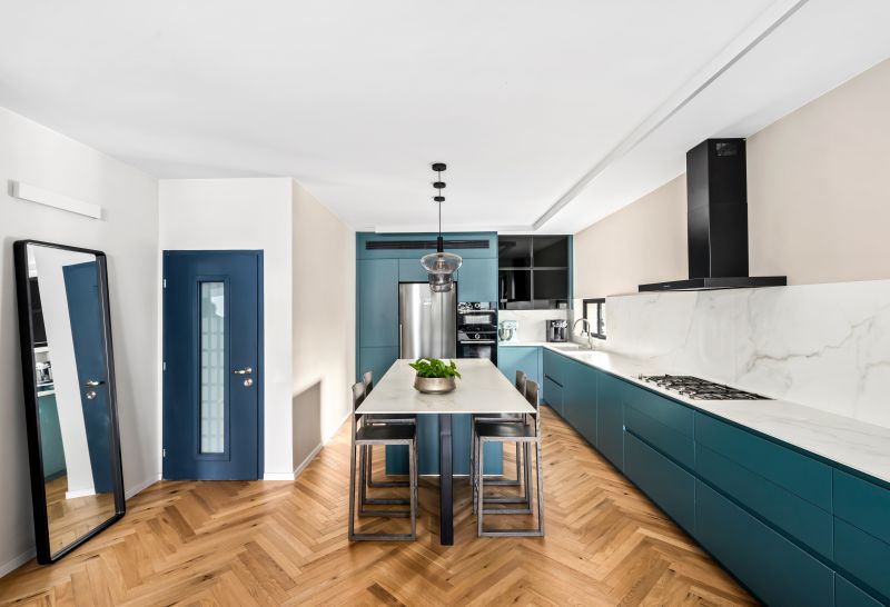 הפרויקט נוטה יותר לכיוון המודרני. בני הזוג מטורפים על הצבע טורקיז אז המטבח הפתוח, שהוא מאוד דומיננטי בדירה, נצבע כולו בטורקיז וסביבו נבחרו יתר האלמנטים העיצוביים. שילבנו עוד נגיעות של טורקיז גם בגב הספרייה ובתמונה שנבחרה לחלל המרכזי.