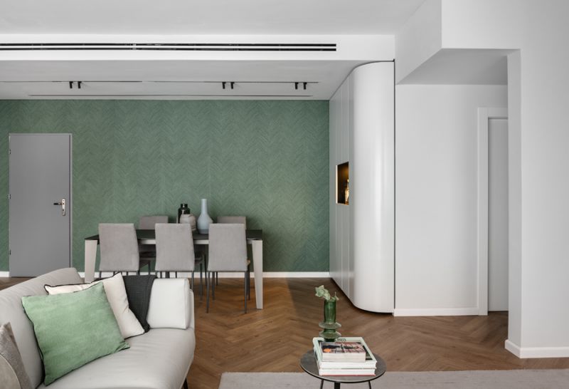 לפינת האוכל האלגנטית, הממוקמת בכניסה לדירה, יש משמעות גדולה מבחינה עיצובית.