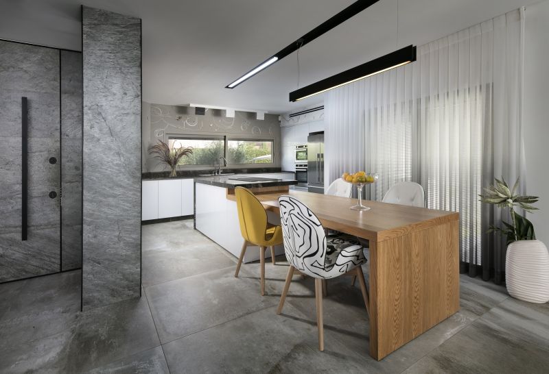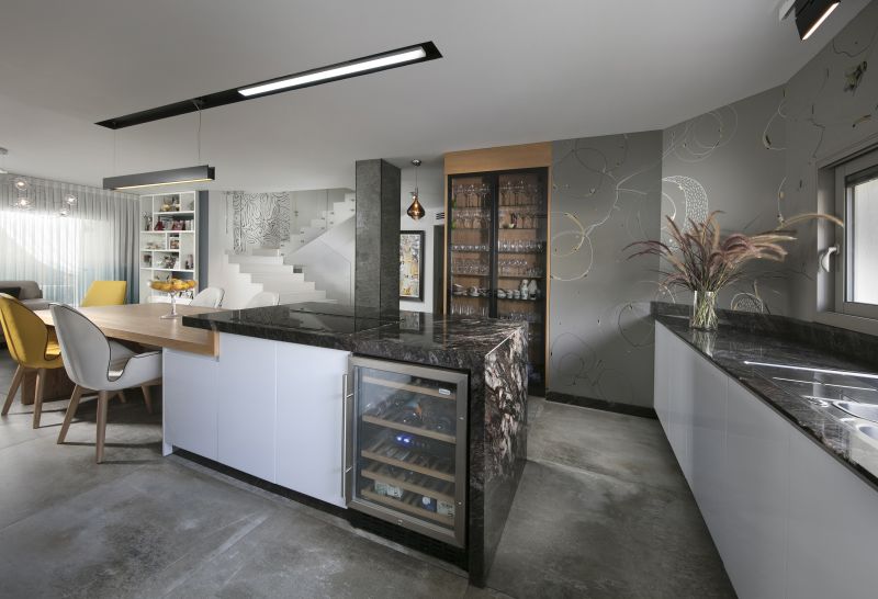 היה מרגש לראות את כל פריטי הריהוט והאלמנטים מתחברים יחדיו.פריטי הריהוט תוכננו ובוצעו לפי הזמנה Custom Made- דלת הכניסה של חברת אפרטו, פריטי ריהוט ומטבח של מטבחי אביבי, ארונות מבית הארדור, קמין גז מיוחד, ריהוט של פרנקו פירי, תאורה של קטלן איטליה- הכל ברמה מאוד גבוהה וביצוע סופר איכותי וכמובן מוצרי אלוני שהשתלבו כריצוף וחיפוי בחלל האמבט, חדר השינה, הסלון, המרפסות והקליניקה וכן, גם רוב מערך הכלים הסניטריים.